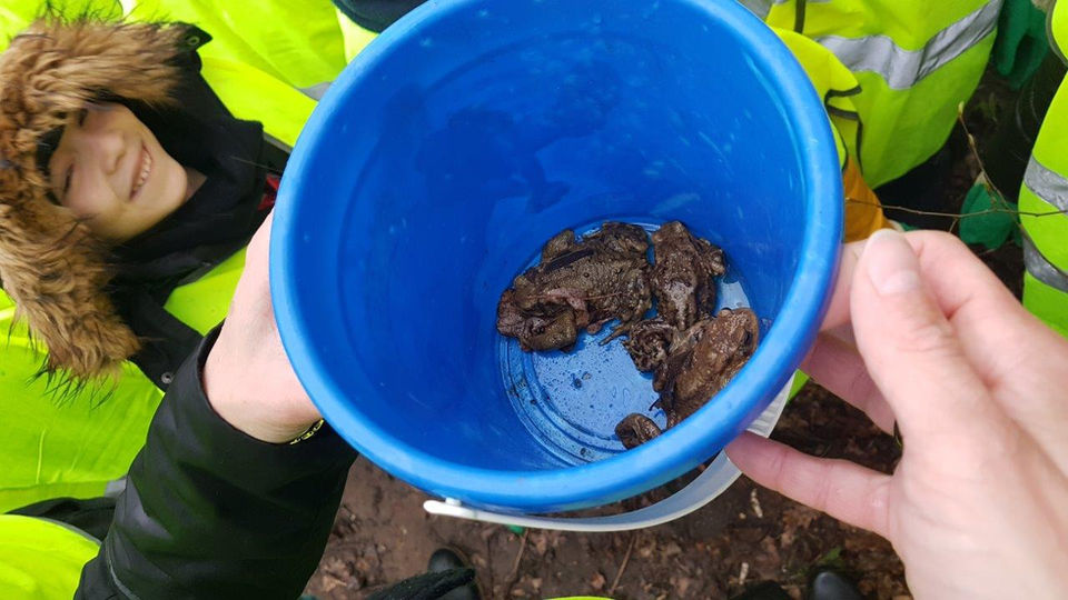 La maraude consiste à récupérer dans des sceaux les batraciens bloqués le long du crapaudrome (bâche en plastique tendu le long de la route pour les empêcher de traverser).